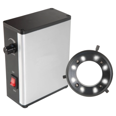 This high quality, detachable 8-Point LED ringlight features light intensity control and produces a cool white light. It is a compact design that allows ease of access to the sample being inspected.